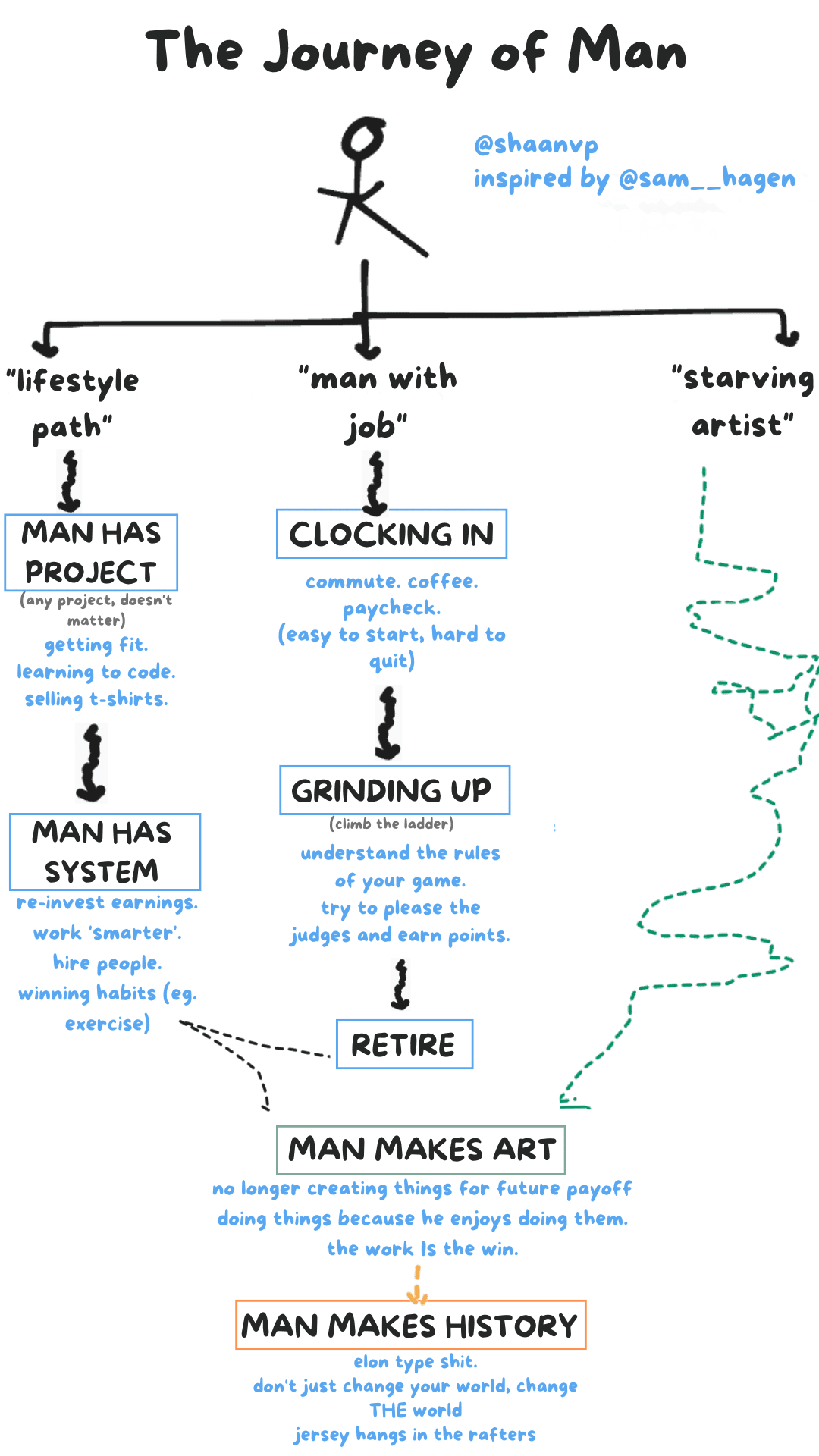 I love this concept by Shaan Puri from this tweet called “the levels of man”.